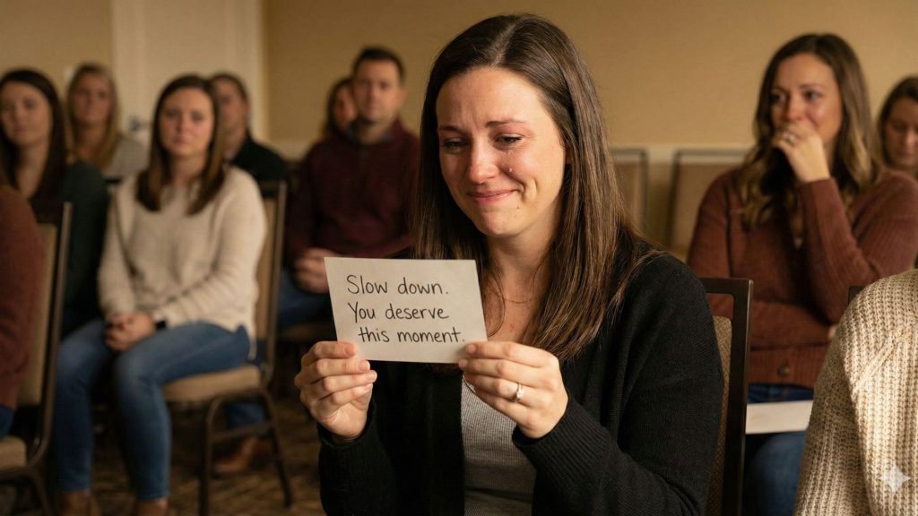 On the day of the event, with vendors bustling and time running like wildfire, she did something simple—almost silly. She wrote tiny handwritten notes and placed one on each chair. Not quotes she found online. Not fancy graphics. Just human things like: